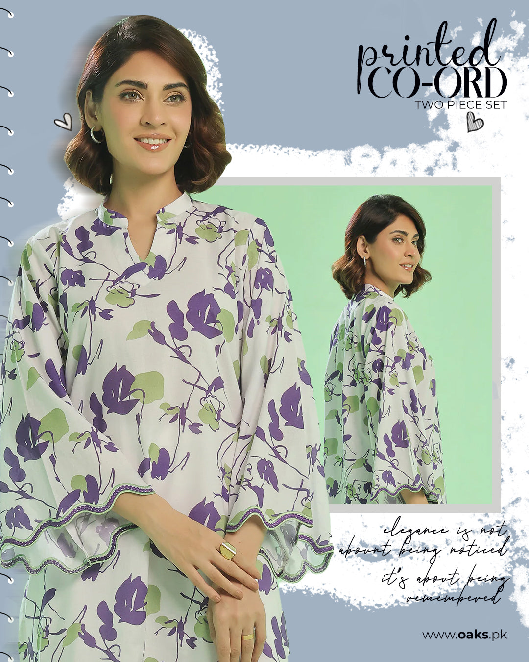 1Pc Printed Pret & Unstitched Kurti Lawn Green & Pink