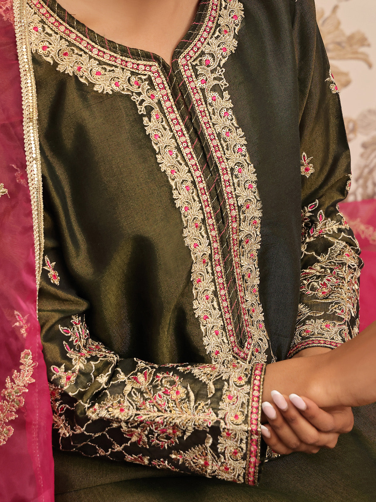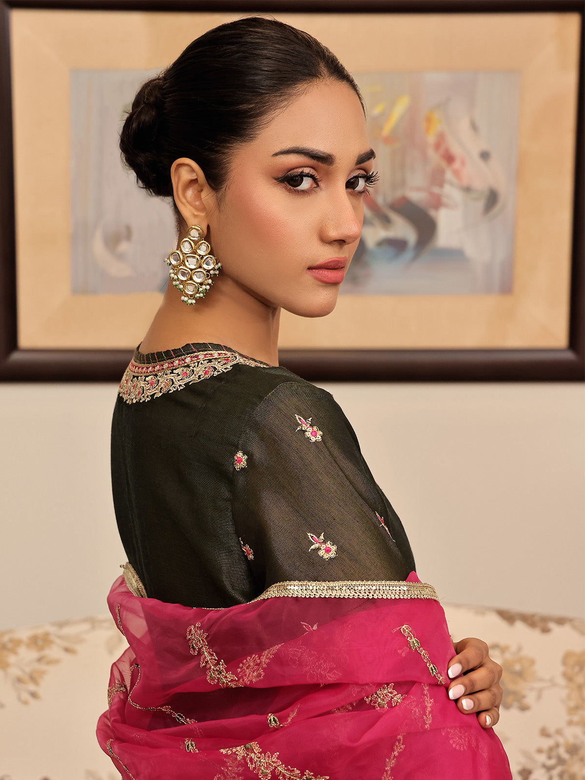 2Pc Embroidered Pret Shirt Dupatta Masoori Dark Green - OWE2P-2311002