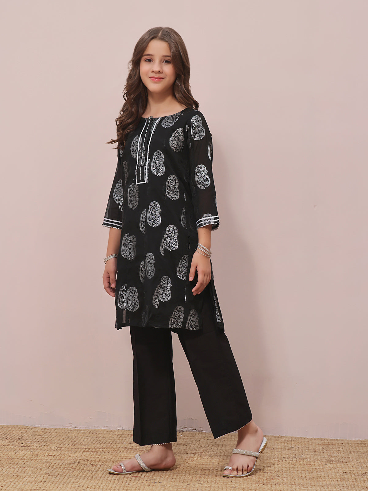 • 1Pc Printed Pret Kurti Jacquard Black - OGKTG-23035