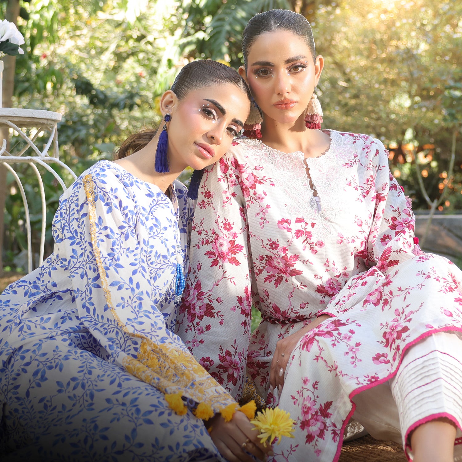 3PCs Printed Pret & Unstitched Suit Lawn Blue