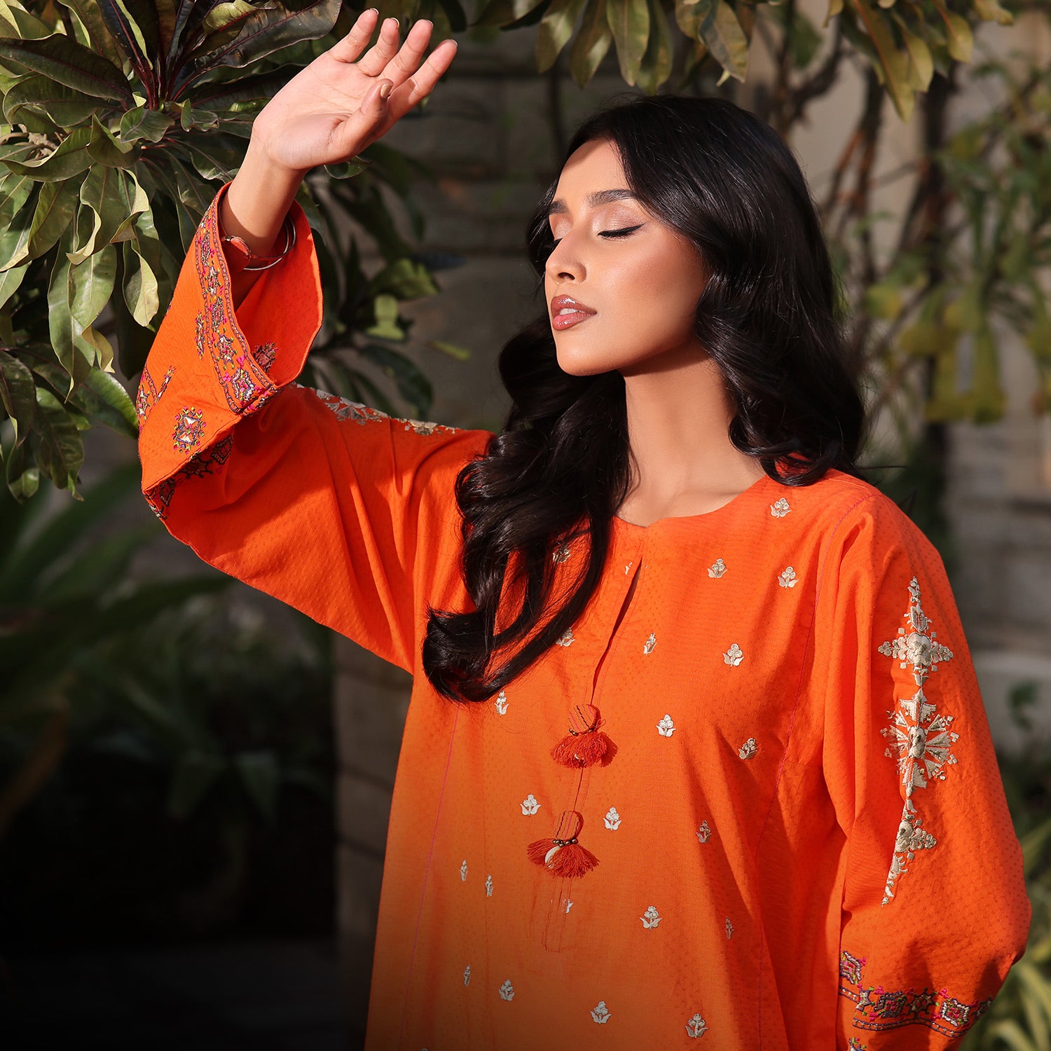 2Pc Embroidered Pret Shirt Trouser Lawn Mustard - OWE2P-2412014