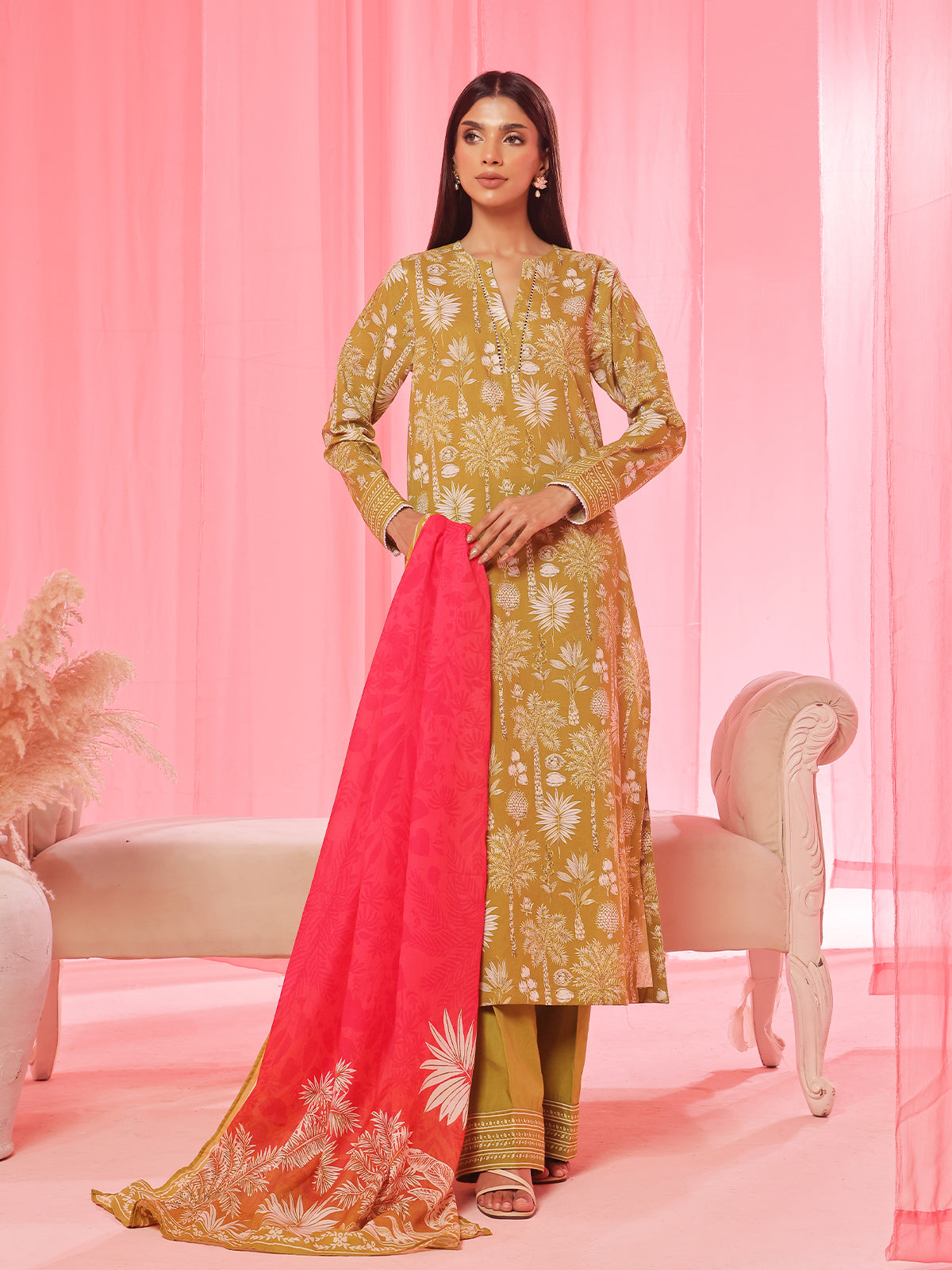 3PCs Printed Pret & Unstitched Suit Lawn Green