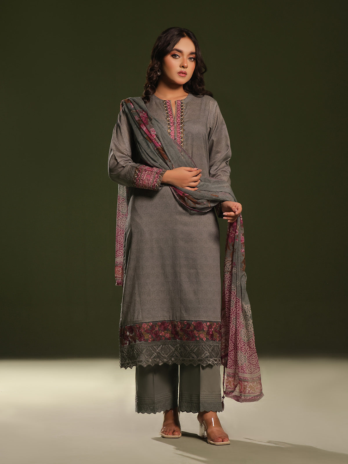 3Pc Embroidered Unstitched Cambric Grey - OCCE3P-6266-A