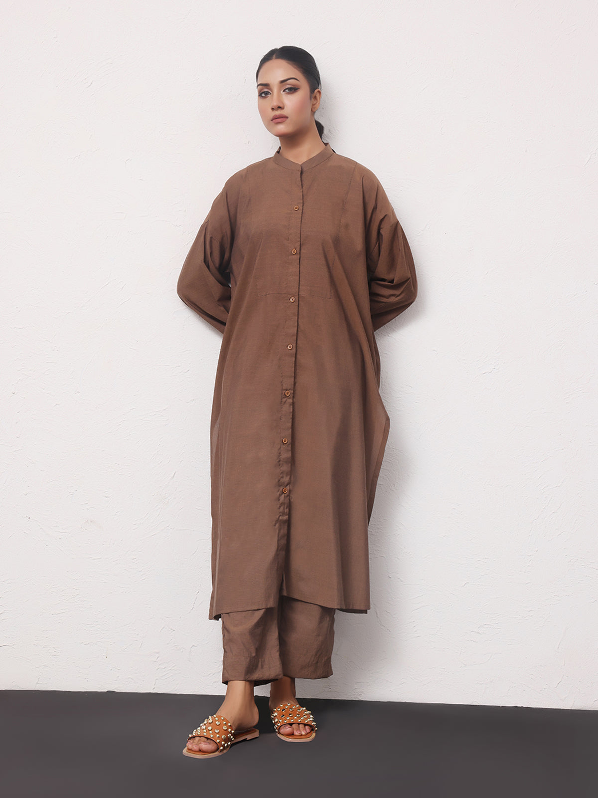 2Pc Solid Pret Shirt Trouser Yarn Dyed Brown - OW2PG-2306006-1