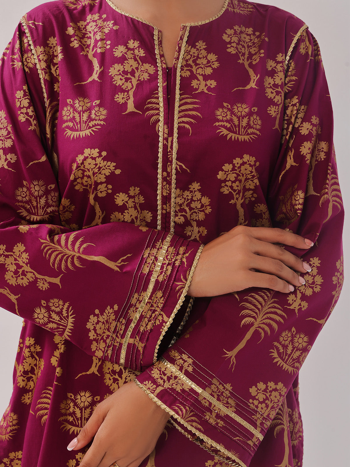 2Pc Printed Pret Shirt Trouser Cambric Magenta - OW2P-2408023