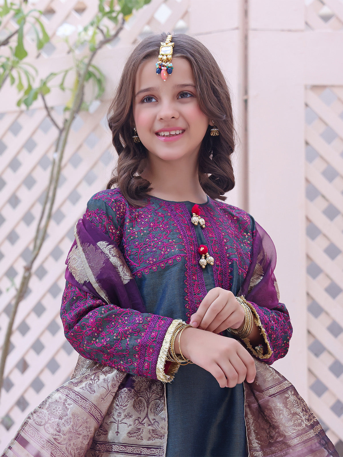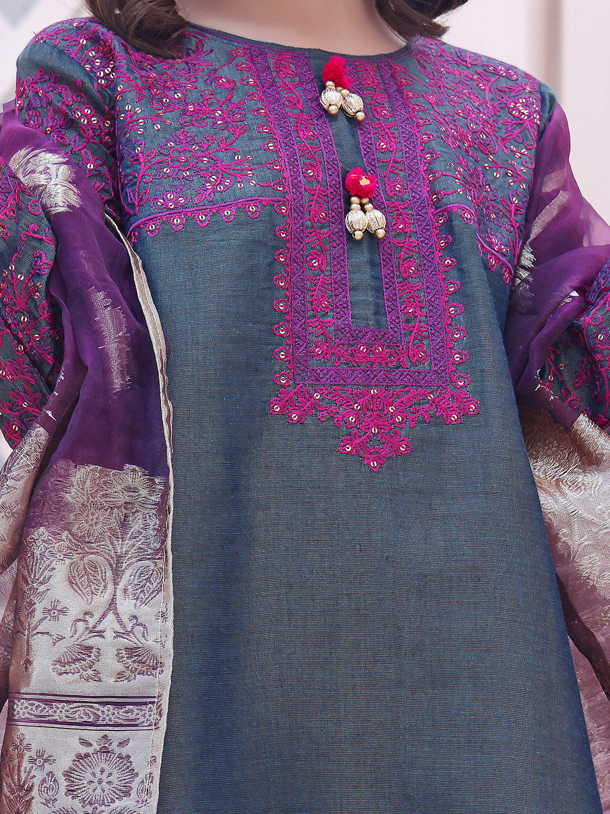 2Pc Embroidered Pret Shirt Dupatta Masoori Navy Blue - OGE2P-2209008