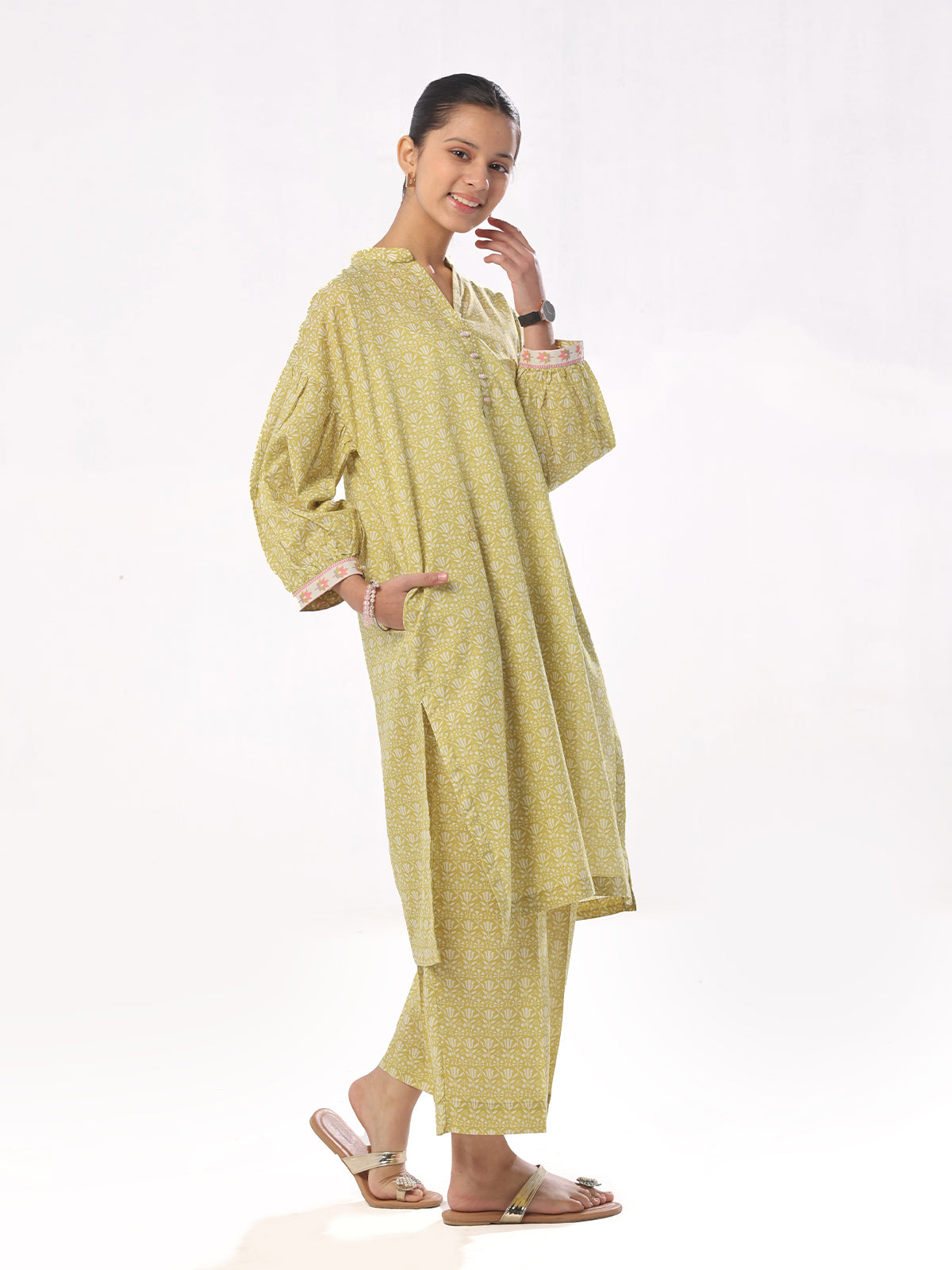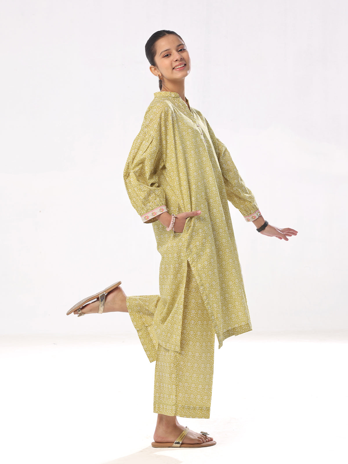 2Pc Printed Pret Shirt Trouser Cambric Mehandi - OG2P-2410027-1