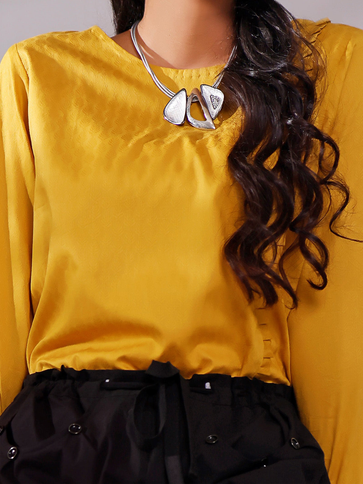 1Pc Solid Fusion Top Jacquard Mustard - OWJTP-1903008