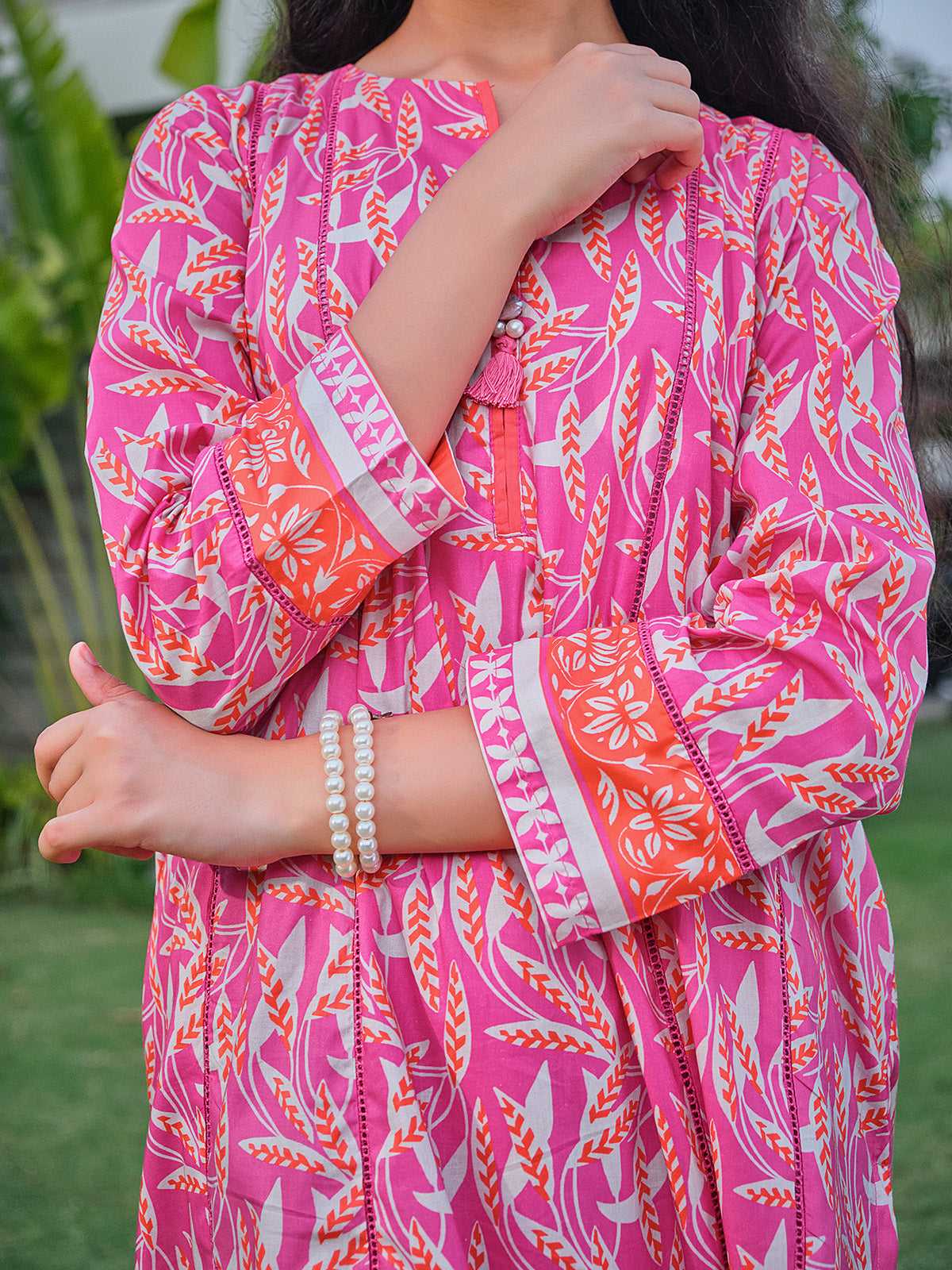 • 1Pc Printed Pret Kurti Lawn Pink - OGKT-2304003