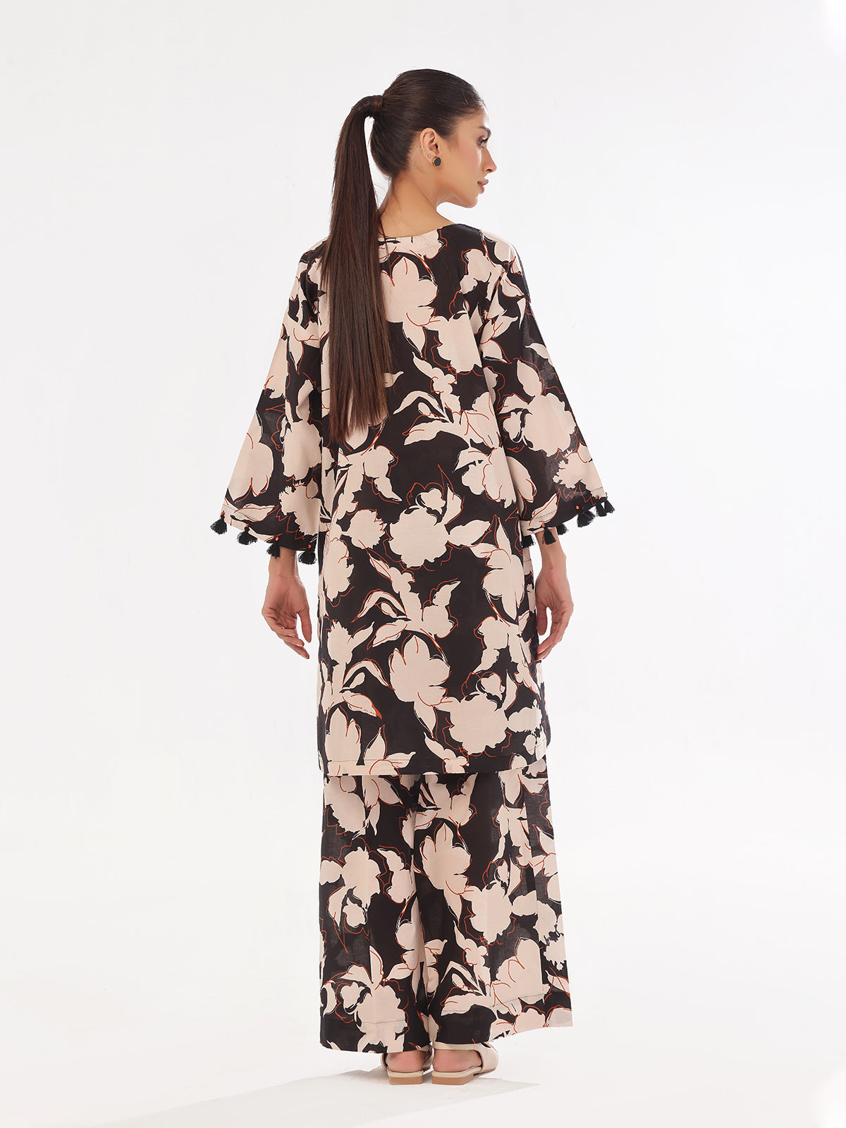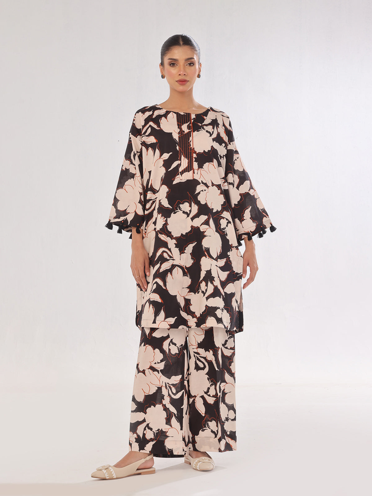 2Pc Printed Pret & Unstitched Shirt Trouser Swiss Lawn Black