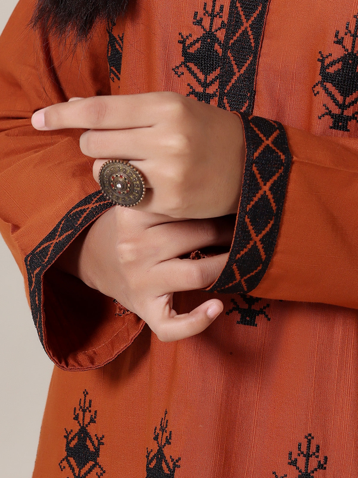 Bright and refreshing, winter dressing with its floral-inspired embroidery. The shirt’s detailed threadwork adds charm, while the warm khaddar fabric keeps you comfortable throughout the cold season.