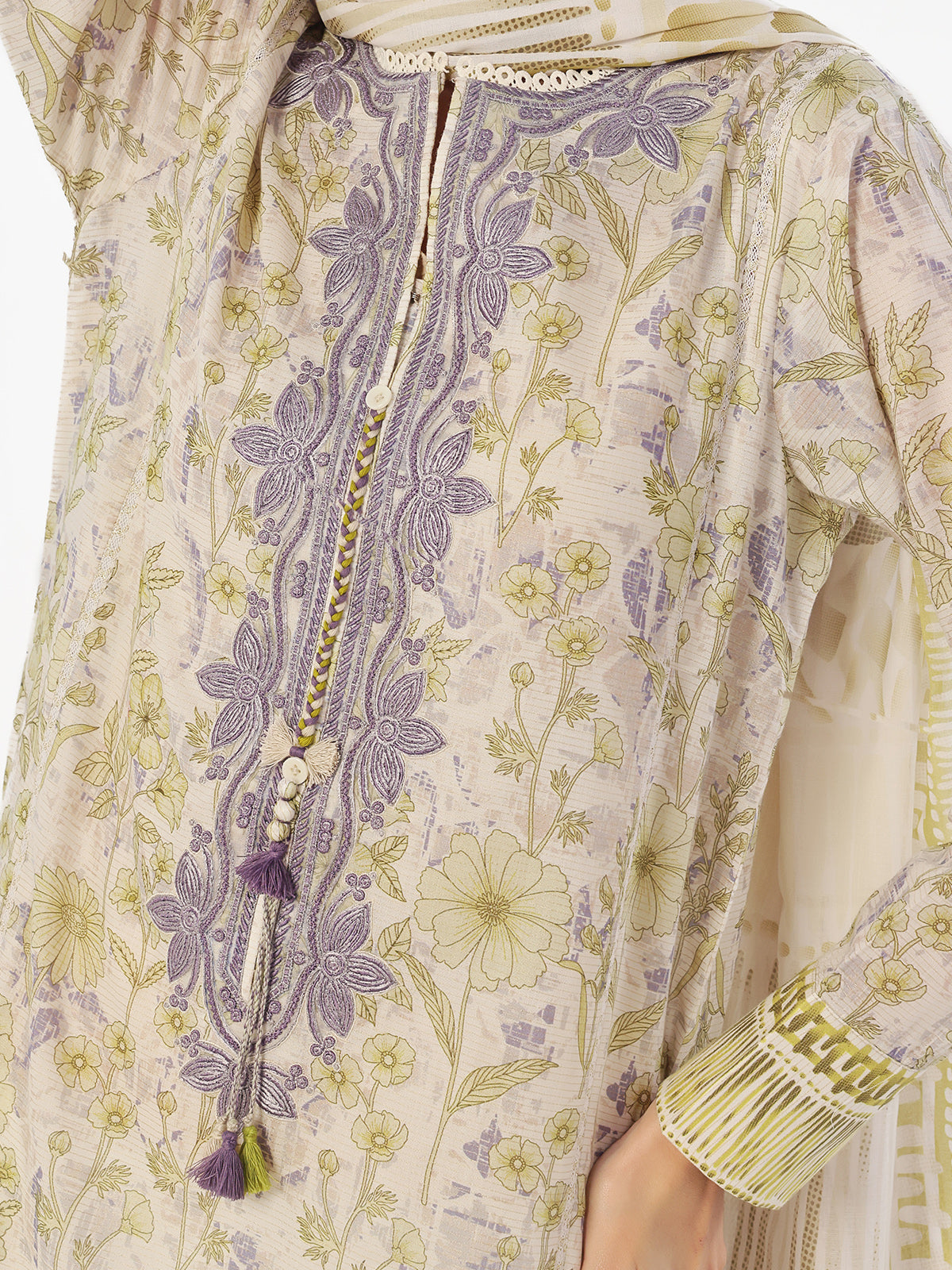 3PCs Embroidered Pret & Unstitched Suit Masoori Lawn Mehndi