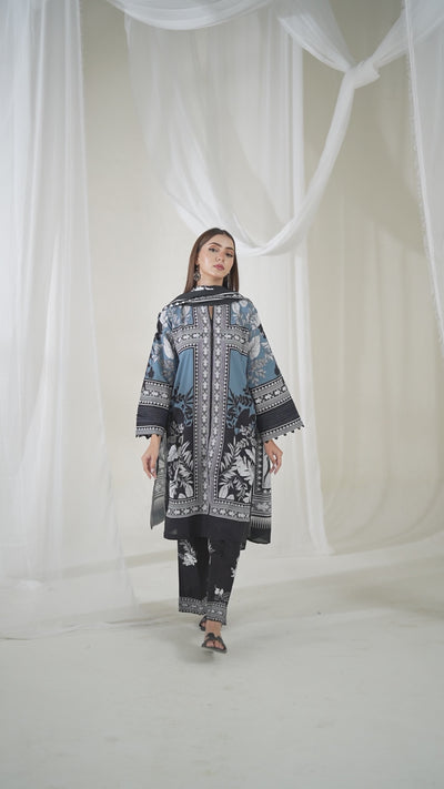 3PCs Printed Pret & Unstitched Suit Lawn Black