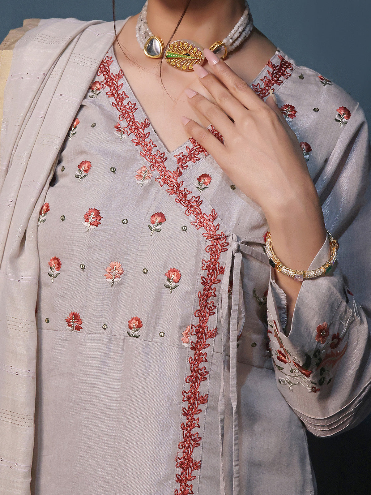• 2Pc Embroidered Pret Shirt Dupatta Masoori Grey Silver - OWE2P-2211014