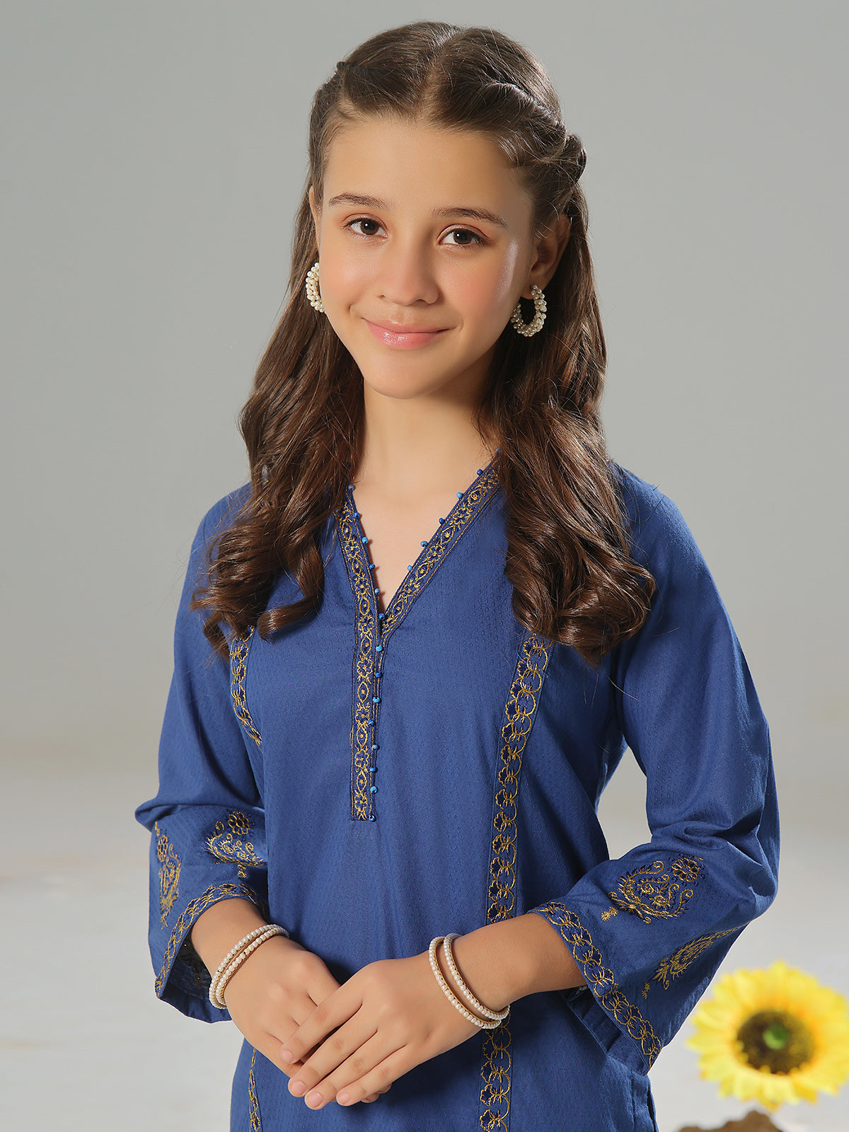 2Pc Embroidered Pret Shirt Trouser Dobby Blue - OGE2P-2405012