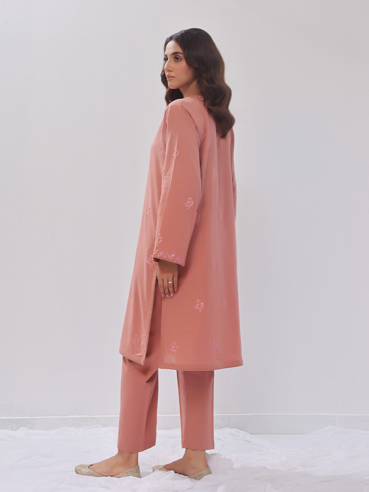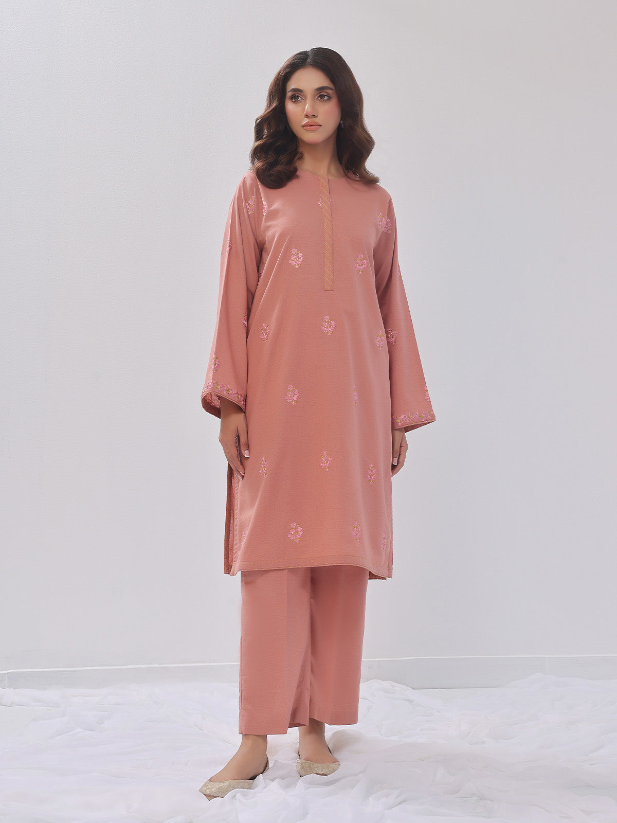 2Pc Embroidered Pret Shirt Trouser Cotton Texture Peach - OWE2PG-2407004