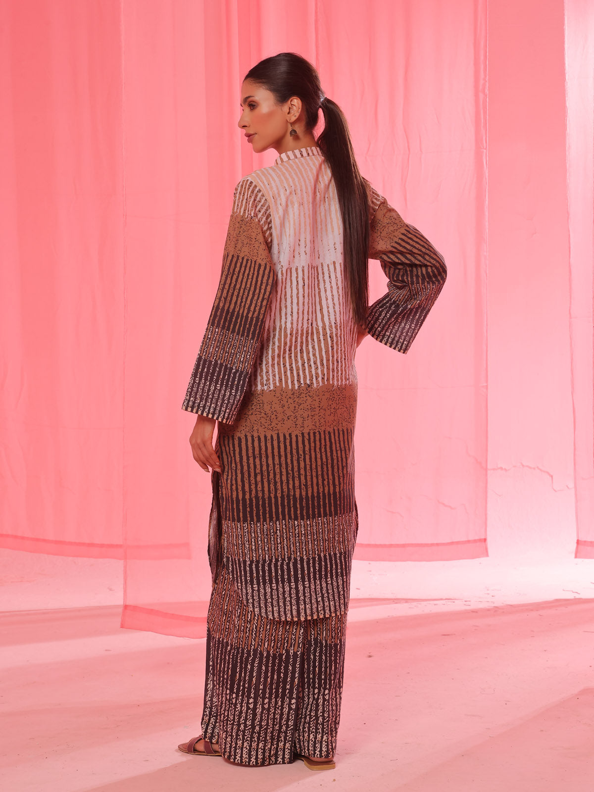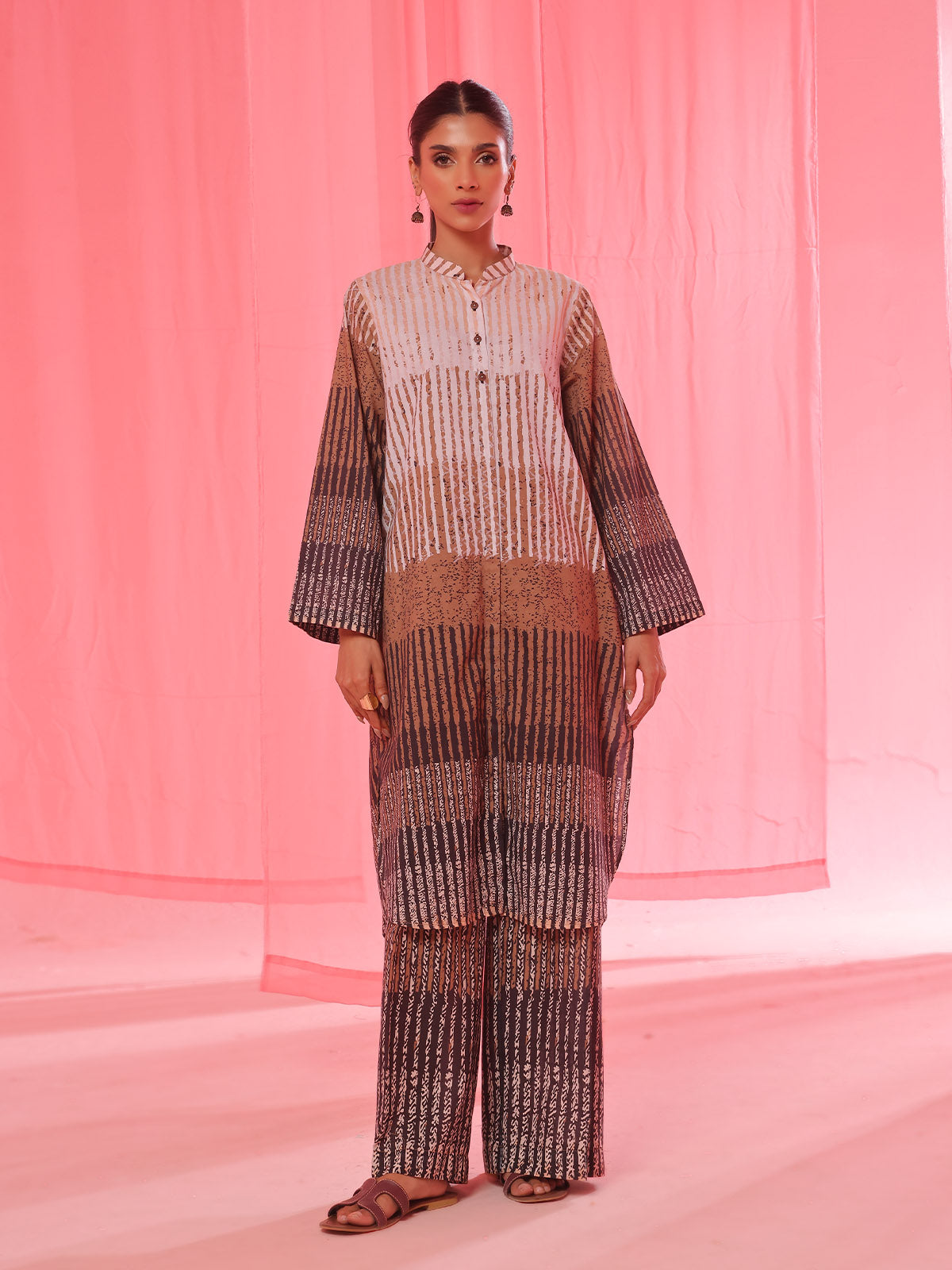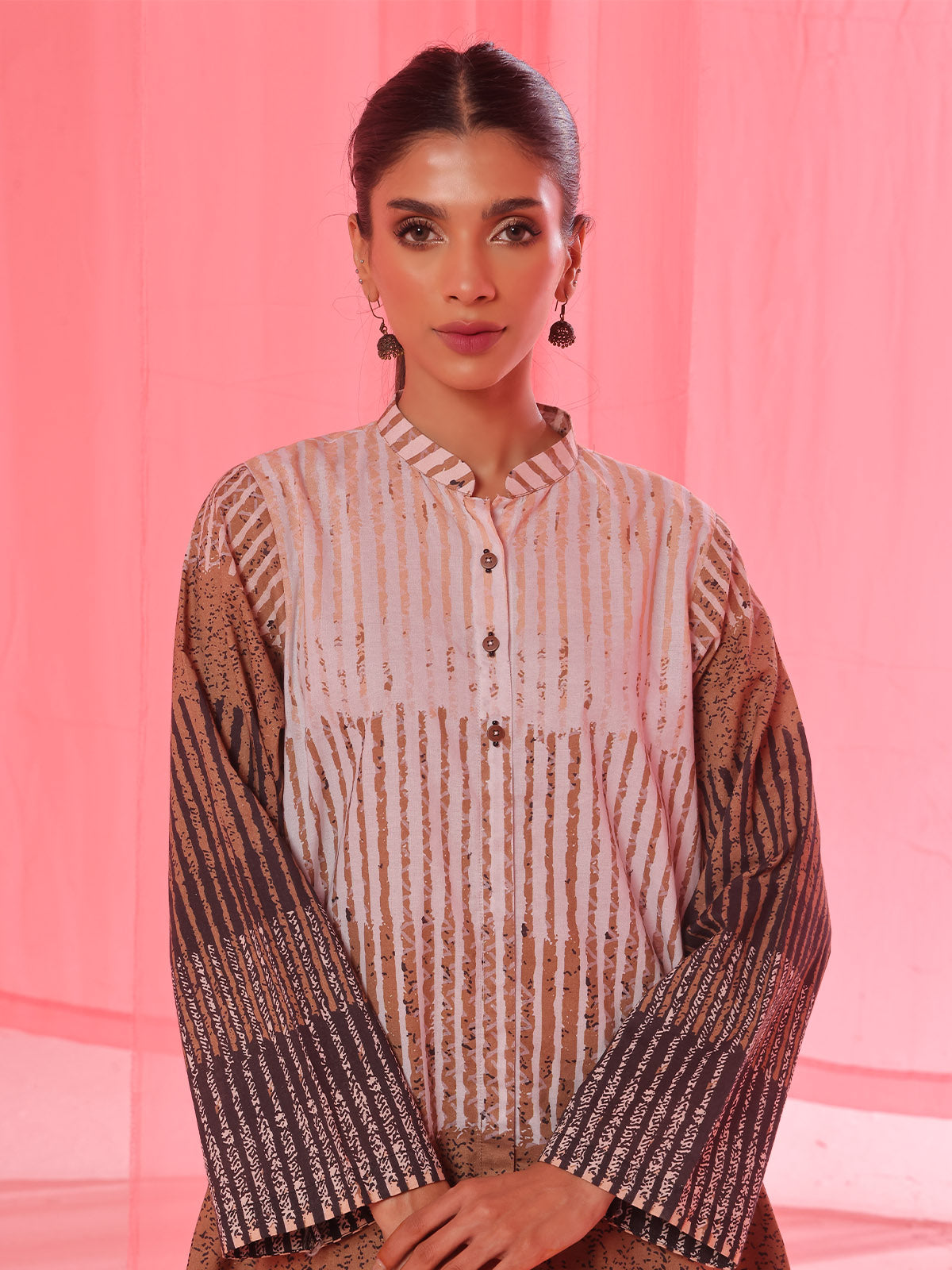 • 2Pc Printed Pret & Unstitched Shirt Trouser Lawn Beige & Brown
