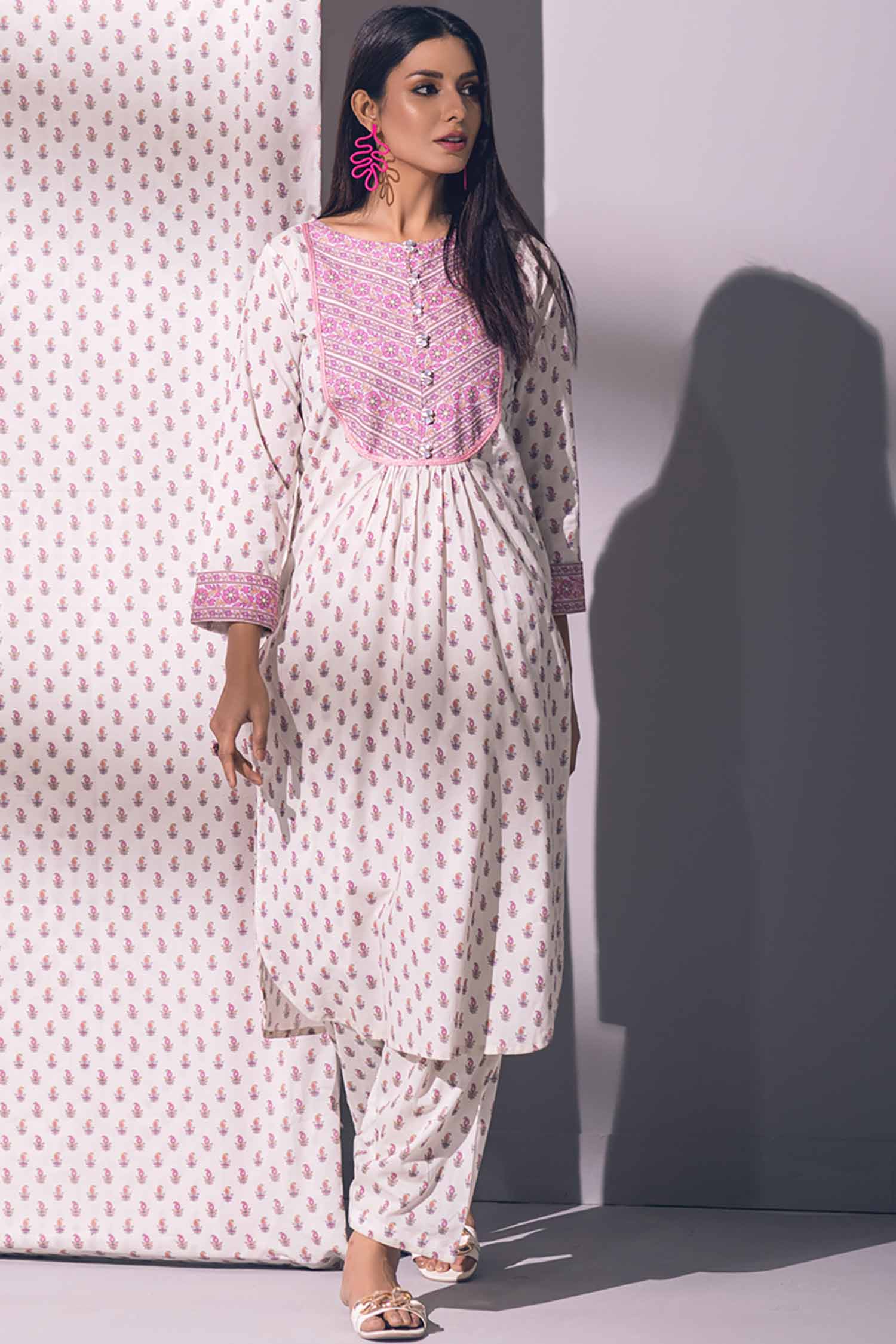 2Pc Printed Pret Shirt Trouser Lawn White & Pink - OW2P-2301002