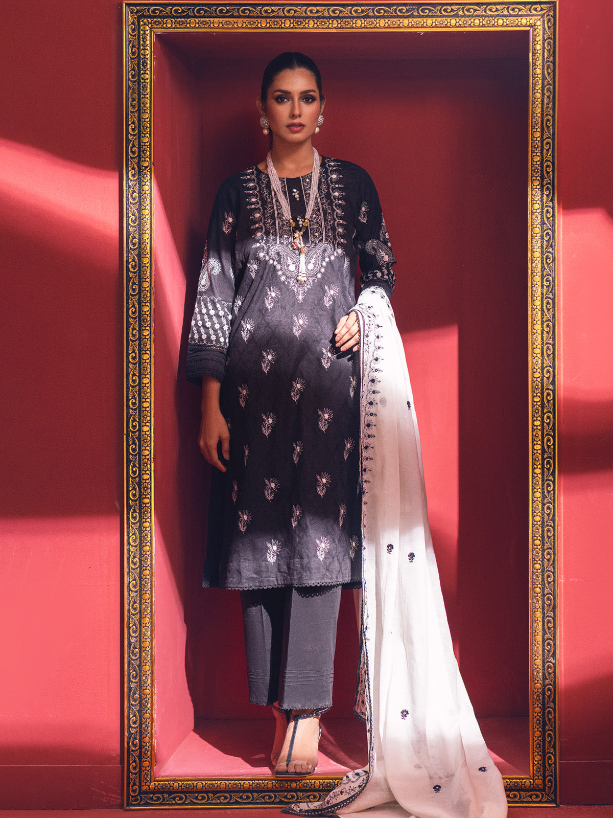 Shirt fabric: Jacquard Dyed Season: Summer Back: Plain Front: Embroidered Sleeves: Embroidered Dupatta: Lawn Embroidered Pieces: 2