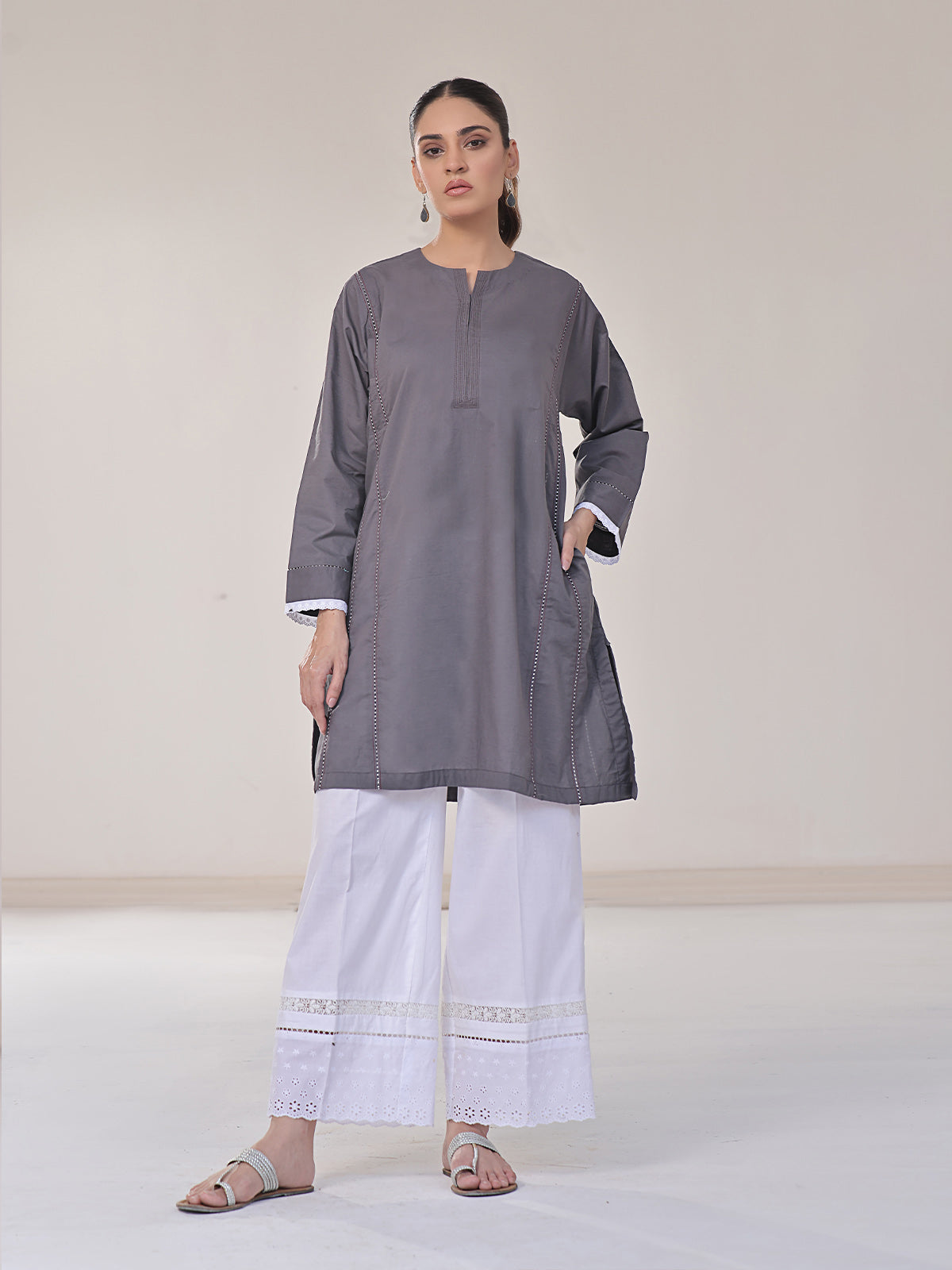1Pc Solid Pret Kurti Lawn Dark Grey - OWKTG-2309030
