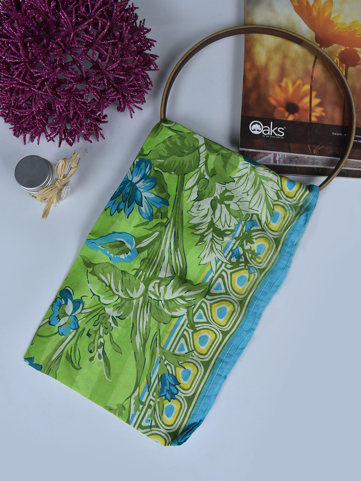 • 1Pc Printed Pret Dupatta Lawn Green - OWDT-2504019