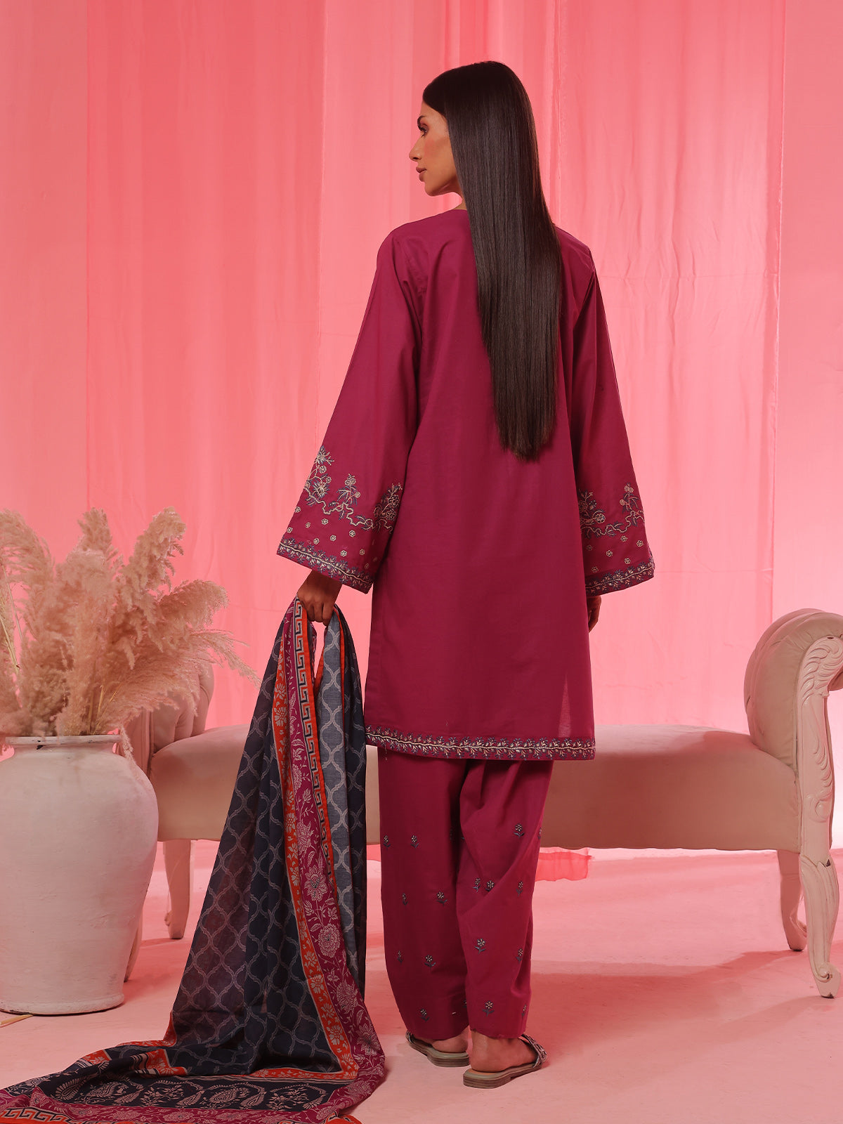 • 3Pc Embroidered Pret Suit Dyed Cambric Magenta - OWE3P-2503004