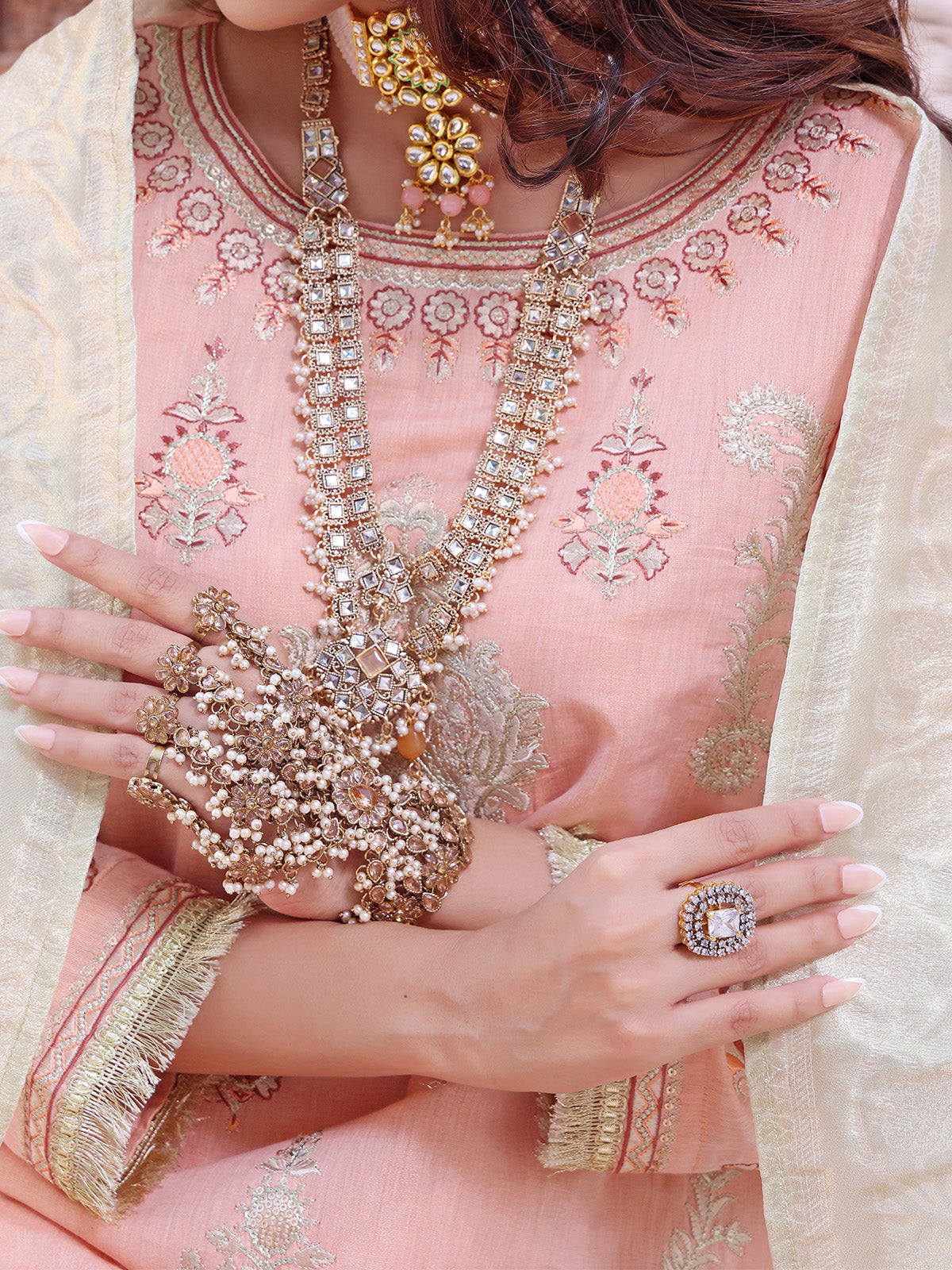 • 2Pc Embroidered Pret Shirt Dupatta Masoori Peach - OWE2P-2209006