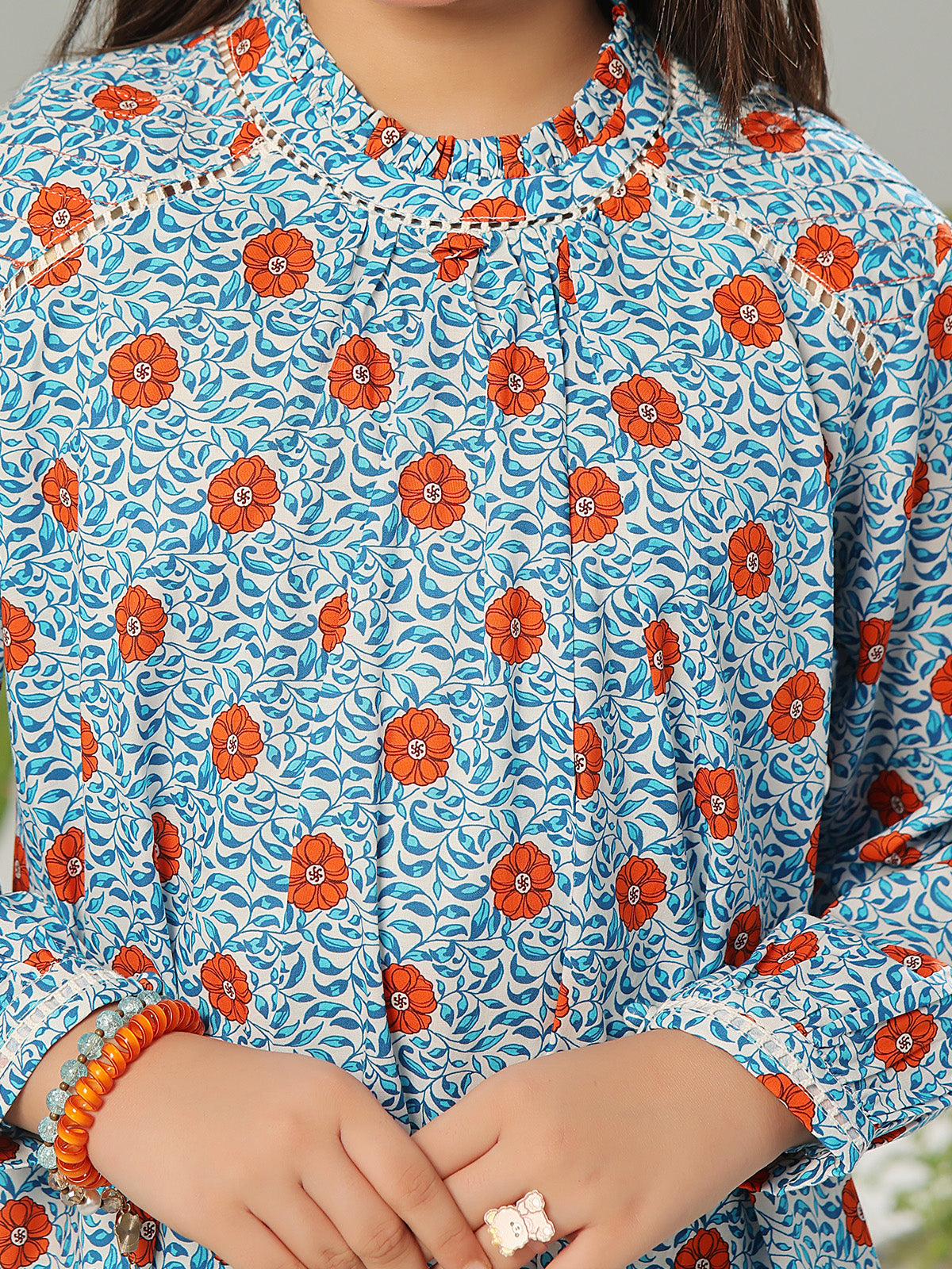 • 2Pc Printed Pret Shirt Trouser Lawn White & Blue - OG2P-2403001