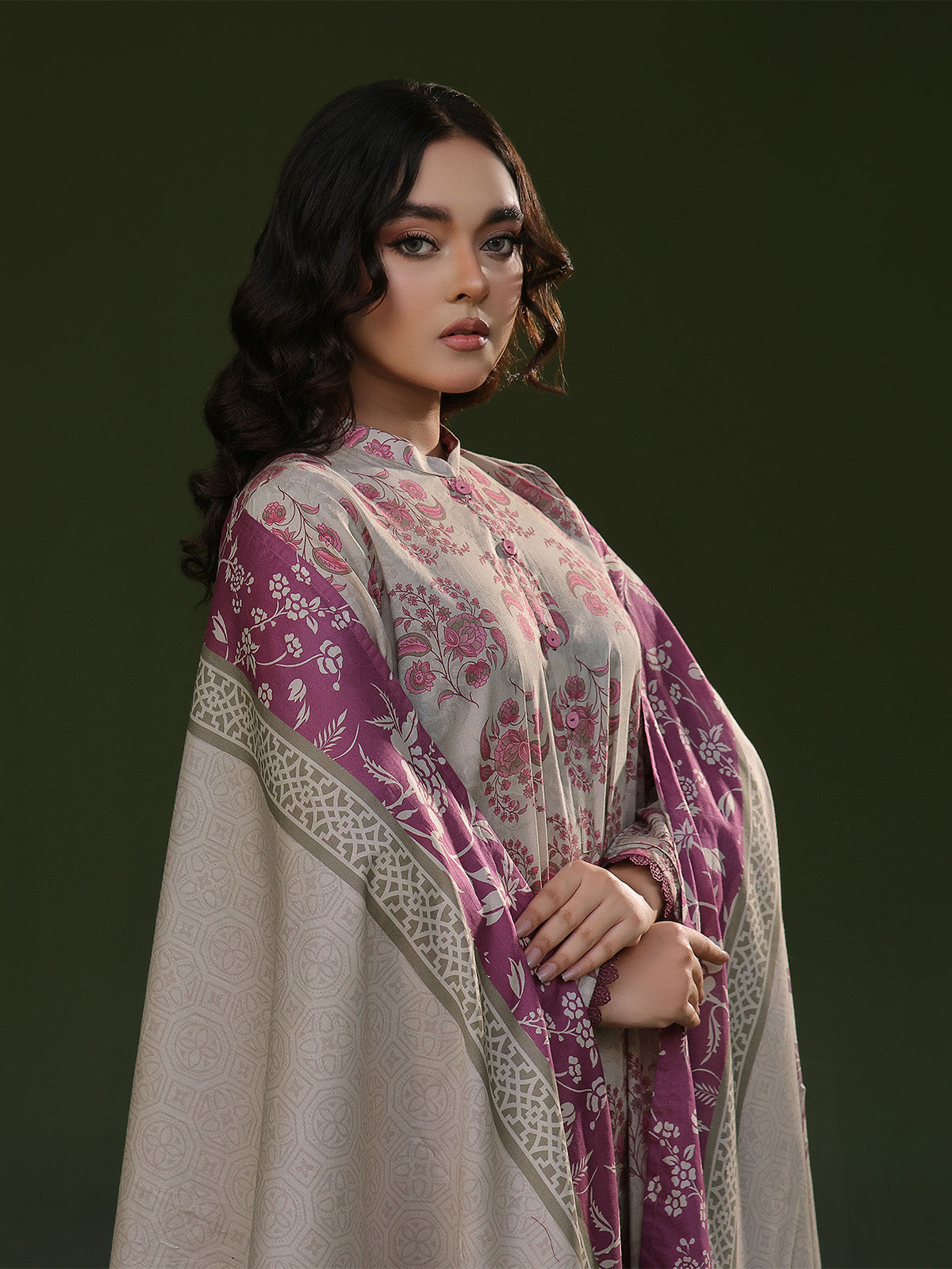 • 3Pc Printed Pret Suit Cambric Beige - OW3P-2411019