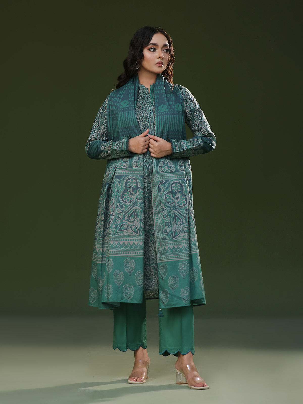 • 3Pc Printed Pret Suit Cambric Green - OW3P-2411016