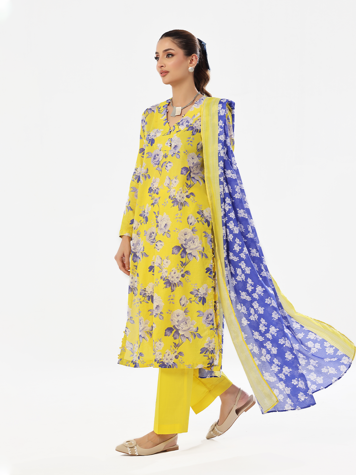3Pc Printed Pret & Unstitched Suit Masoori Lawn Yellow