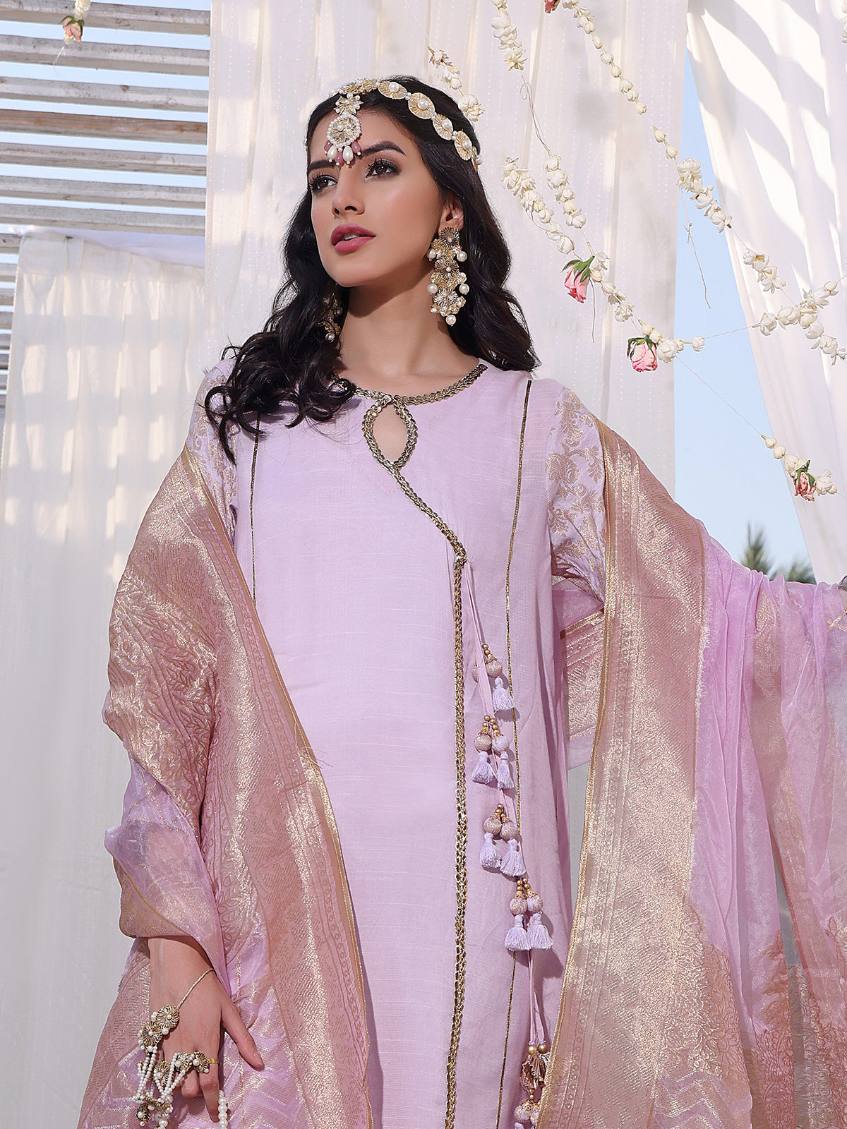 3Pc Formal Suit Pret Raw Silk Purple - OW3P-2207028