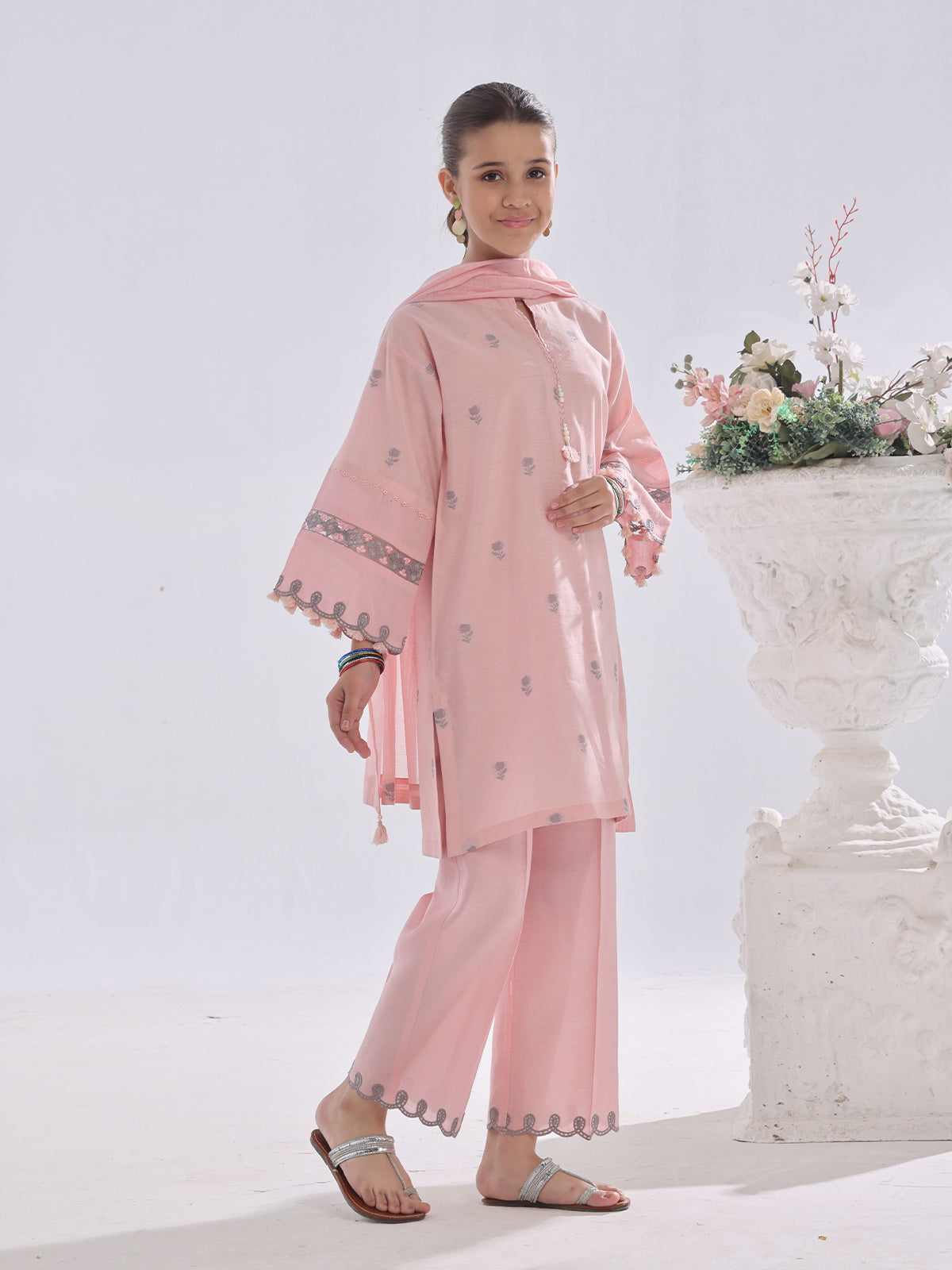 • 3Pc Embroidered Suit Pret Cotton Silk Jacquard Pink - OGE3P-2410019