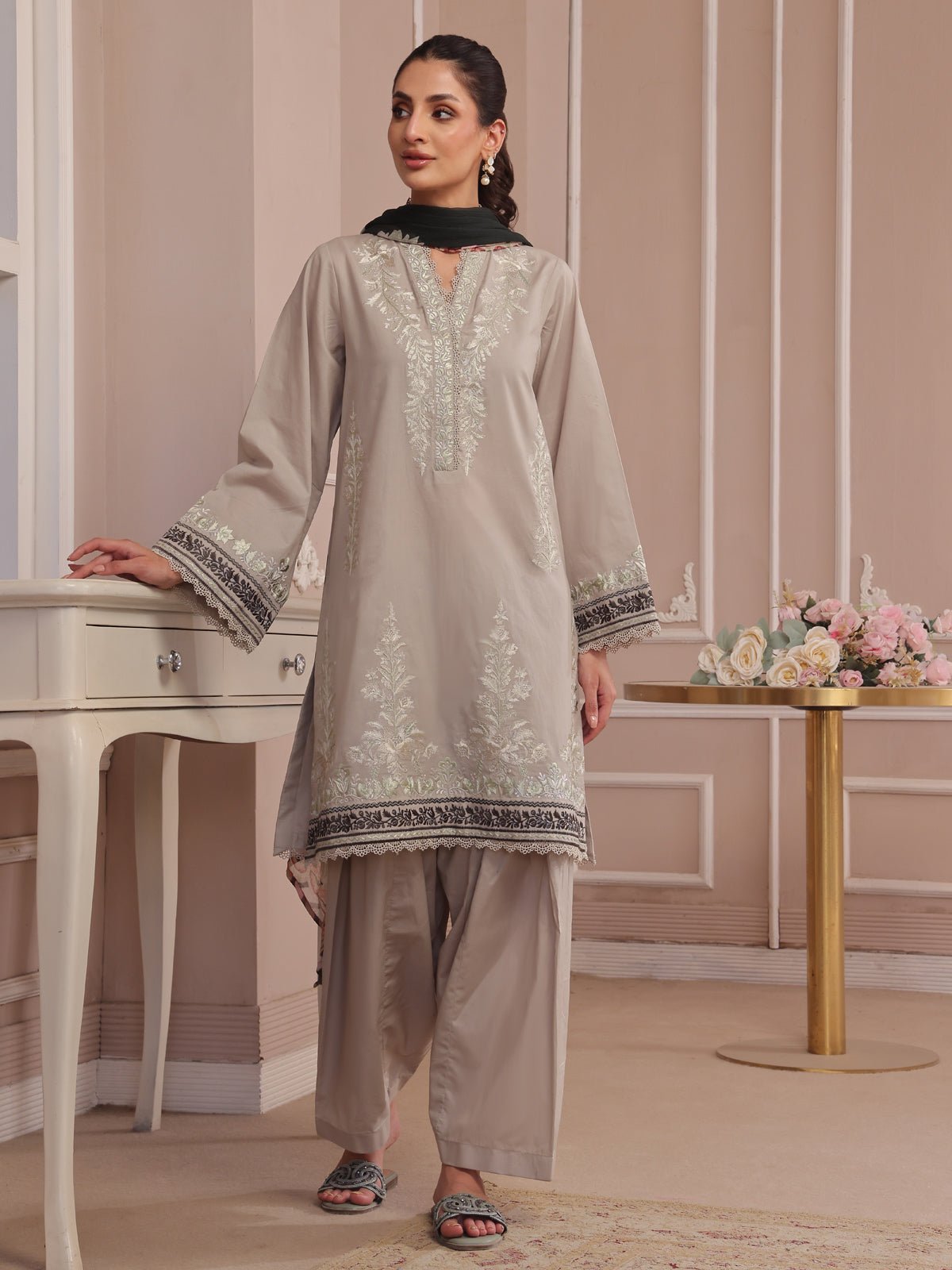 • 3PCs Embroidered Pret & Unstitched Suit Dyed Cambric Beige
